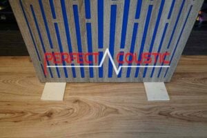 - Szerkezet kialakítása: A panel 1,8cm keményfa szerkezetbe illesztett hangelnyelő anyag amire egy fa lamellás fali panelt illesztünk.