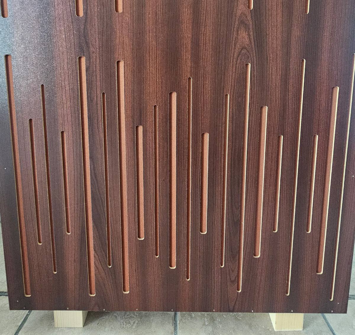 Minden sarokelemnek 45° letört oldala van. Így biztosítva a könnyű és diszkrét elhelyezést. Panelok vastagsága és mérete nem indokolja a felfúrásukat. Csak tegye le a földre és stabilan megáll a lábán. Kemény 2 cm faszerkezetnek köszönhetően akár 3db sarok elemet is egymás tetejére rakhat. Még így is nagyon stabil marad és nem dől el.