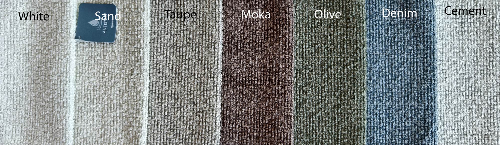 | Színek | taupe, ash, black, cement, denim, moka, mouse, olive, sand, white |